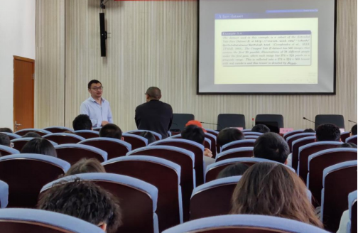 然后,圍繞講座主題,車茂林副教授首先給出了三階張量的t-URV分解的定義,并導(dǎo)出了計算t-URV的確定性算法。然后以一種隨機算法逼近t-URV,稱為cort-URV。最后通過幾個數(shù)值例子說明了該算法的有效性,并給出使用cort-URV對一些圖像和視頻數(shù)據(jù)庫中的數(shù)據(jù)張量進行壓縮的應(yīng)用案例。