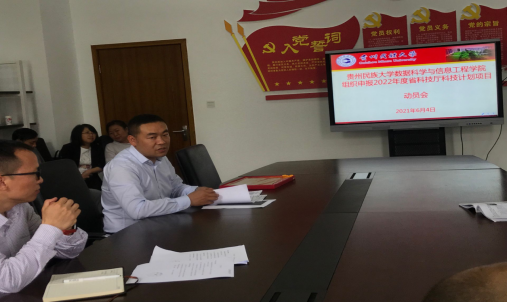 接著,夏大文院長介紹學院即將組織申報的2021年度貴州省科學技術獎、2022年度省科技廳科技計劃項目,2021年貴州民族大學重點實驗和工程研究中心、2021年度校級基金科研項目,服務國家戰略服務民族工作重大需求研究2021年度課題等五項內容的基本情況,并強調了學院對于教師參與科研工作大力支持的態度,鼓勵全院教師積極地提出想法、參與項目。