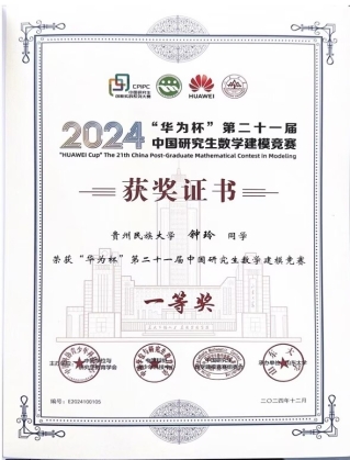12月8日,“華為杯” 第二十一屆中國研究生數學建模競賽頒獎典禮在山東大學落下帷幕。由貴州民族大學天游線路檢測中心研究生鐘玲(隊長)、羅淑霞、林勉三位同學組成的團隊,在蔡靜老師精心指導下,表現優異,榮獲國家級一等獎,為學校爭得了榮譽,充分展現了貴州民族大學學子風采。此外,本次大賽中,貴州民族大學學子還獲得了5項國家級三等獎的優異成績。
