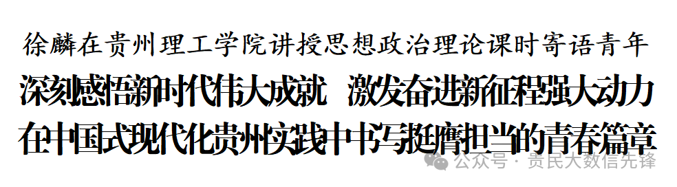 11月20日,省委書記、省人大常委會主任徐麟到貴州理工學院講授思想政治理論課,深入學習貫徹黨的二十屆三中全會精神和習近平總書記視察貴州重要講話精神,寄語全省廣大青年深刻感悟新時代偉大成就,激發奮進新征程強大動力,在中國式現代化貴州實踐中書寫挺膺擔當的青春篇章。