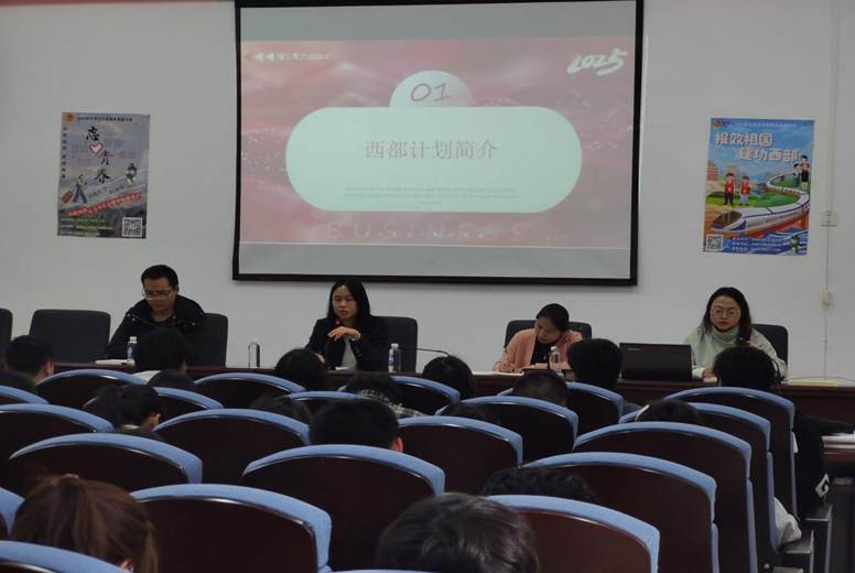 動員會上,老師們分別從不同維度展開指導:黨委副書記趙孝梨重點解讀政策保障與選拔流程;團委負責人趙靜系統梳理了西部計劃報名全流程,從線上系統填報、材料審核要點到選拔標準說明,分步驟拆解關鍵環節,確保在場學子清晰掌握報名流程;就業指導安敏老師以分析“基層經歷對公考、企業招聘的賦能效應”;優秀指導教師張宏梨則從安全保障、心理調適角度提出實用建議。